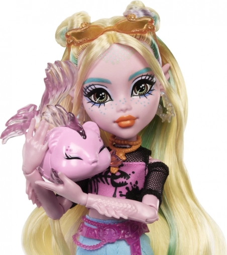 Lalka Lagoona Blue jest gotowa rządzić głębinami i modowymi trendami. Ma długie, częściowo upięte włosy z pastelowymi pasemkami, różowy top z motywem rybich ości oraz kolorowe spodnie w stylu Y2K. Dzięki stawom jest łatwa do ustawiania i idealna do pomysłowych scenek oraz zdjęć.