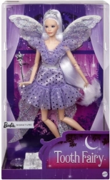 Urzekająca kolekcjonerska lalka Barbie Signature Wróżka Zębuszka zachwyci małych miłośników bajek i dorosłych kolekcjonerów. Pojawia się w lśniącej fioletowej sukni z falbanami, z przezroczystymi skrzydłami, srebrną różdżką i tiarą. W zestawie znajduje się także błyszczący woreczek z „monetami wróżki” do magicznego rytuału związanym z wypadniętym ząbkiem.