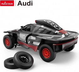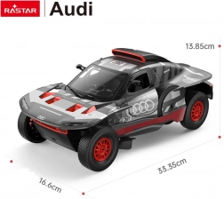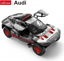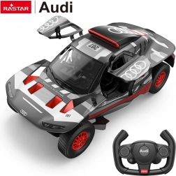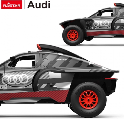 Wierny model zdalnie sterowany AUDI RS Q e-tron marki RASTAR w skali 1:14 oferuje precyzyjne sterowanie 2,4 GHz, gumowe koła, przednie światła LED, otwierane drzwi oraz niezależne zawieszenie. Dzięki wysokiej jakości plastiku ABS i dopracowanemu wnętrzu ciesz się realistyczną jazdą z 2 prędkościami.