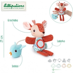Odkryj czarującą pacynkę Lilliputiens Stella – miękką sarenkę w kwiecistej sukience z prążkowanymi różkami, która dzięki otworom w łapkach łatwo się „ożywia” i wciąga dzieci w świat wyobraźni. Precyzyjne wykonanie, bezpieczne materiały i sprytnie ukryte elementy gwarantują zabawę i rozwój umiejętności.