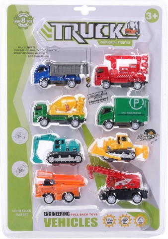 Zestaw 8 pojazdów dla wszystkich małych miłośników aut i pociągów zachwyca kompaktowymi wymiarami oraz napędem typu pull-back, który zapewnia wciągającą i interaktywną zabawę.