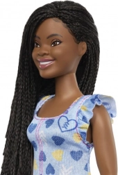 Ta modna lalka BARBIE inspiruje dzieci do opowiadania własnych historii. Ubrana jest w wyrazistą niebieską sukienkę ozdobioną kolorowymi serduszkami, uzupełnioną różowymi okularami i butami. Długie warkoczyki i radosny wyraz twarzy czynią z niej idealną towarzyszkę do codziennej zabawy i rozwijania wyobraźni.