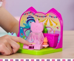 Przeżyj karnawałową zabawę w pokoiku do domku GABBY'S DOLLHOUSE! Czeka na Ciebie urocza figurka Narwalkotki (ok. 5 cm), basen z piłeczkami, gra w rzucanie kółek, lada z przekąskami, obracana scena oraz niespodzianka z Kociej Przesyłki. Świetne do rozwijania wyobraźni i zabawy w odgrywanie ról dla dzieci od 3 lat.