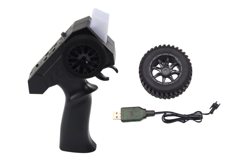 Pojazd wyposażony jest także w funkcjonalne światła z przodu i z tyłu, co nie tylko podkreśla jego realistyczny wygląd, ale również zwiększa frajdę z zabawy przy słabszym oświetleniu lub w nocy. Sterowanie odbywa się za pomocą nowoczesnego pilota 2.4G, który zapewnia precyzyjną kontrolę. Zdalne sterowanie umożliwia pełen zakres ruchu oraz dwustopniową zmianę prędkości, dzięki czemu dopasujesz tempo jazdy do własnych potrzeb i preferencji. Funkcja hamowania po odpuszczeniu spustu pozwala na szybkie i bezpieczne zatrzymanie pojazdu oraz łatwą reakcję na przeszkody.