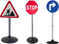 Praktyczny zestaw edukacyjny znaków drogowych pomaga dzieciom w przystępny, zabawowy sposób przyswoić zasady ruchu drogowego. Zawiera trzy realistyczne znaki: STOP, nakaz jazdy w prawo oraz roboty na drodze. Dzięki wysokości 76 cm są dobrze widoczne, wspierają bezpieczne zachowanie na drodze i rozwój kreatywnej zabawy. Wykonane z trwałych materiałów, odpowiednie dla dzieci od 3 lat, z certyfikatem CE i normą EN71.