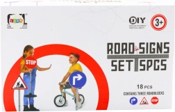 Opakowanie zawiera 18 elementów do szybkiego montażu i atrakcyjnej nauki wychowania komunikacyjnego – idealne dla nauczycieli i rodziców.