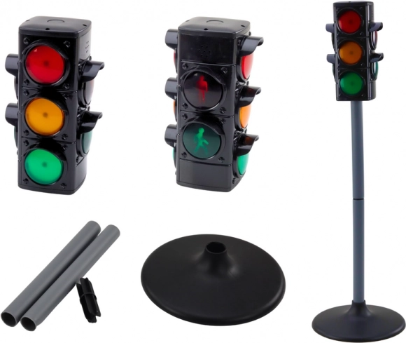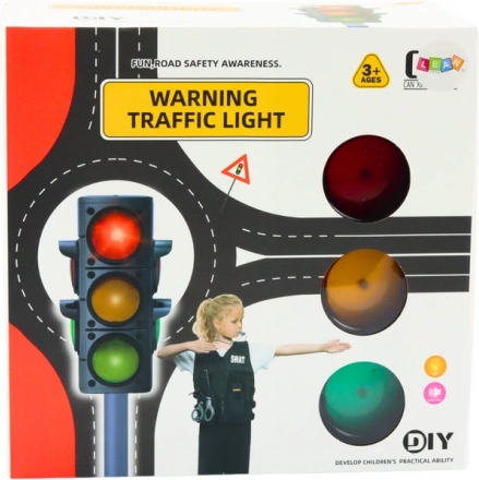 - Świetlny sygnalizator: naśladuje prawdziwą sygnalizację (zasilanie 3× AAA, baterie nie są dołączone)