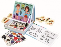 Układanie scenek z magnetycznych obrazków nie tylko rozwija małą motorykę i zręczność, ale także pobudza wyobraźnię. Podczas opisywania zabawnych historii dzieci poprawiają swoje umiejętności wypowiadania się i poszerzają słownictwo.