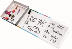 Umożliwia łączenie pisania, zmazywania oraz układania magnetycznych obrazków w jednym zestawie. Ten zestaw jest idealny do ćwiczenia pisania literek i cyfr, a jednocześnie zapewnia dużo wolnej przestrzeni do rysowania pisakiem suchościeralnym.