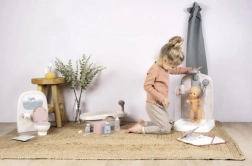 Zawiera uchwyt na ręcznik i haczyki na szlafroki, co dzieciom umożliwia bardziej realistyczne doświadczenia.