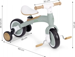 Łatwo przełączysz między trójkołowcem z pedałami a rowerkiem biegowym. Idealny do płynnego przejścia od nauki do samodzielnej jazdy bez bocznych kółek.