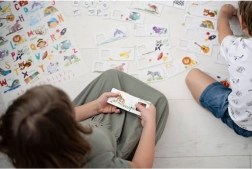 Gra również rozwija pamięć i umiejętności koncentracji. Dziecko uczy się dopasowywać obrazki i żetony z literami.