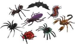 Zestaw zawiera pająki, krocionoga, biedronkę, skorpiona, mrówkę, świerszcza, karalucha i nietoperza. Woreczek ułatwia przechowywanie i przenoszenie.