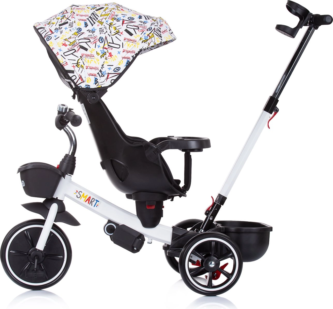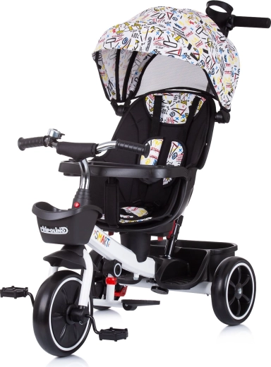 Wielofunkcyjny produkt Chipolino Trójkołowy rowerek z daszkiem Futuro z 2 różnymi sposobami użytkowania – rodzic pcha dziecko lub dziecko samodzielnie prowadzi zabawkę za pomocą pedałów. Trójkołowiec stanie się świetnym towarzyszem, który będzie rósł razem z dzieckiem.