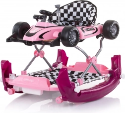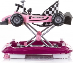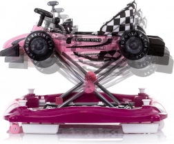 Chodzik 4w1 Car Racer Pink to idealny pomocnik dla dzieci od 6 miesięcy do 12 kg, które samodzielnie siedzą. Łączy funkcje chodzika, bujaka, centrum zabawy oraz pchacza dla pierwszych kroków. Wyścigowy design z odpinanym panelem w kształcie bolidu natychmiast przyciąga uwagę i zachęca do ruchu.