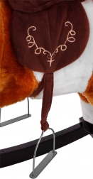 Ten bujany konik oferuje bezpieczne bujanie na solidnych drewnianych płozach oraz interaktywną zabawę. Miękki plusz jest przyjemny w dotyku, siodło ze strzemionami i uzda dają pewność podczas jazdy. Dzięki efektom dźwiękowym oraz ruchowi pyszczka i ogona dzieci doświadczą realistycznych wrażeń jak na prawdziwym koniu.