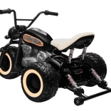 Nasz dziecięcy trójkołowiec na akumulator łączy design klasycznego motocykla z elementami bezpieczeństwa dla małych kierowców. Wyposażony jest w szerokie koła stabilizujące oraz wygodne siedzenie, które gwarantują komfortową i bezpieczną jazdę.