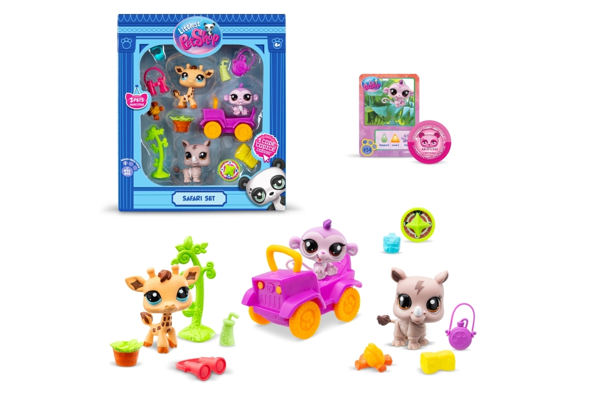 Odkryj nową generację LITTLES PET SHOP! Ten uroczy zestaw safari zawiera 3 zwierzątka, 10 szt. akcesoriów oraz kod do gry Roblox, który odblokowuje niespodzianki i wirtualne pupilki. Idealny do kreatywnej zabawy, kolekcjonowania i tworzenia własnych historii w świecie LPS.