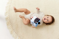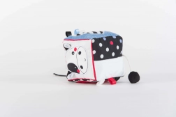 Krowie uszy, tygrysi ogonek i metki zachęcają do chwytania i ugniatania, co wzmacnia chwyt i małą motorykę.