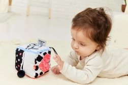 Ta mięciutka sensoryczna kostka została zaprojektowana dla najmłodszych odkrywców. Każda z sześciu stron dostarcza innego bodźca – od kontrastowych czarno-białych wzorów z kolorowymi akcentami po rozmaite tkaniny i powierzchnie, które zachęcają do dotykania i poznawania. Urocze motywy krowy i tygrysa pobudzają ciekawość i uczą dziecko rozpoznawania kształtów oraz emocji.