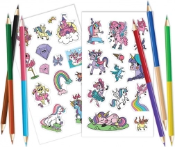 Stwórz magiczny świat z kolorowanką podróżną Jednorożce, pełną aktywności i zabawy dla wszystkich grup wiekowych. To praktyczne zestaw podróżny zawiera: