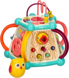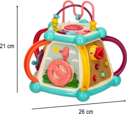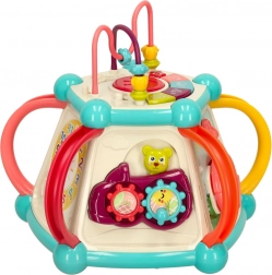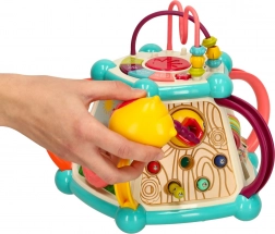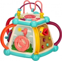 Pianinko, kierownica i obracające się kółka pobudzają kreatywność i wyobraźnię, a jednocześnie wzmacniają zręczność palców. Każda strona kostki oferuje nową aktywność.