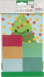 - Obrazek na podkładzie, samoprzylepne kamyczki w 5 kolorach, piankowe kwadraciki