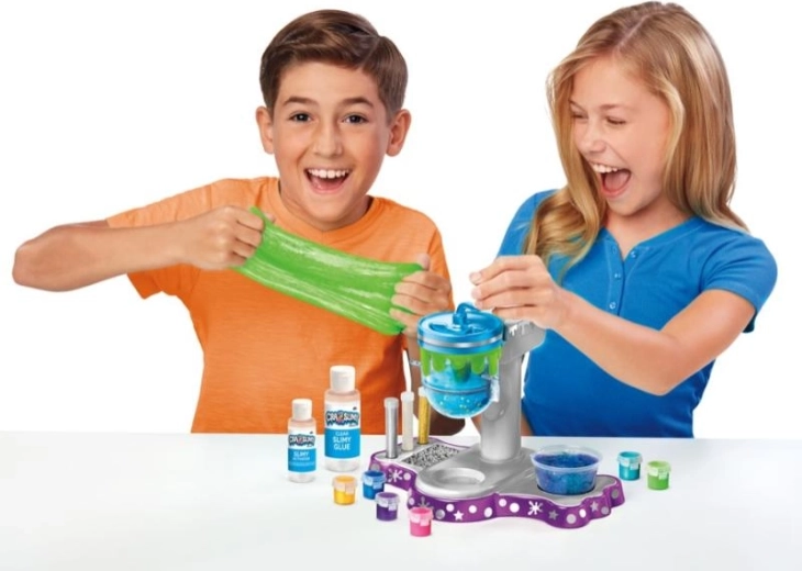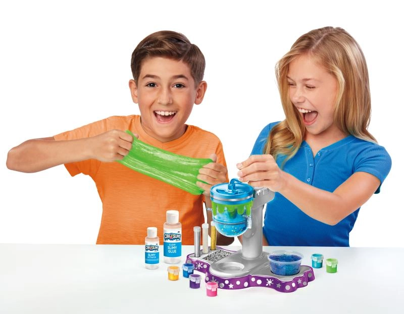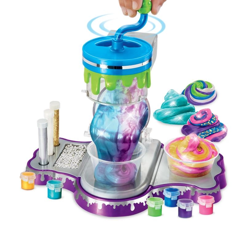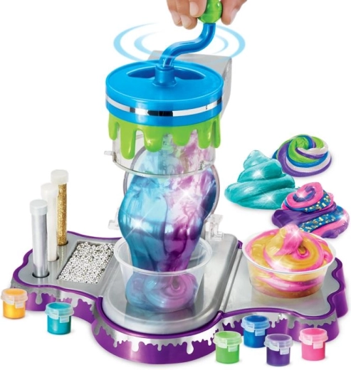 Wystarczy dodać klej, aktywator, barwniki i brokat, następnie kręcić korbką i obserwować, jak slime idealnie się miesza – bez bałaganu i bez baterii.