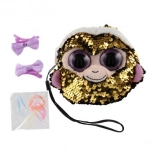 Ten uroczy i kolorowy, atrakcyjny portfelik jest odpowiedni dla wszystkich małych dziewcząt, które chcą mieć swoje drobiazgi w bezpiecznej i stylowej formie. Wykonany z miękkiej tkaniny i ozdobiony cekinami, które zmieniają kolor przy ruchu.