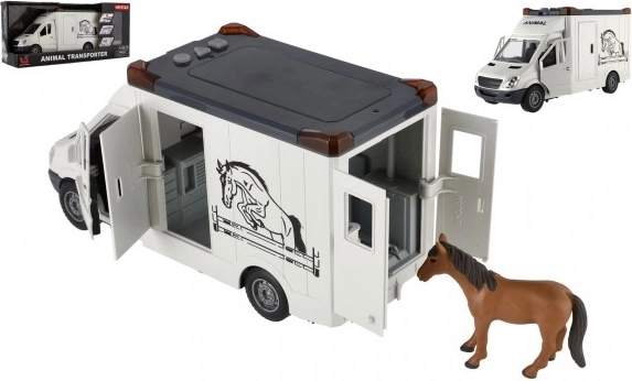 Pojazd jest ozdobiony grafiką z koniem i napisem 'ANIMAL', co nadaje mu wygląd rzeczywistego transportera do zwierząt.