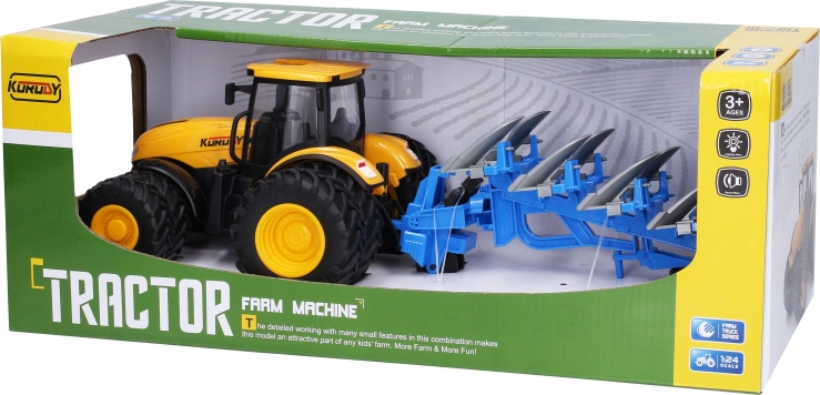Traktor wyróżnia się precyzyjnym wykonaniem i funkcjonalnymi akcesoriami, dzięki czemu zabawka realistycznie symuluje prawdziwy pojazd. Zaprojektowany z podwójnymi kołami dla lepszej stabilności i poruszania się po nierównym terenie.