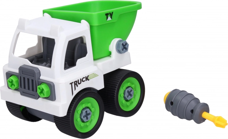 Ta zabawka sprzątające auto oferuje podwójną frajdę dzięki możliwości przemiany między wywrotką a śmieciarką. Dzieci mogą dzięki dołączonemu śrubokrętowi składać i rozkładać auto według własnych pomysłów, co wspiera ich zdolności motoryczne oraz kreatywność.