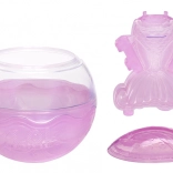 Przezroczysta kula/„akwarium” po rozpakowaniu zamienia się w stojak i witrynkę, dzięki czemu laleczkę pięknie wyeksponujesz i bezpiecznie przechowasz. W zestawie znajdziesz także tematyczne akcesoria (np. okulary, muszelki czy buteleczkę), które rozwijają wyobraźnię i zachęcają do kolekcjonowania.