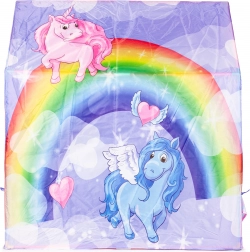 Stwórz dzieciom ich własną przystań dla fantazji i zabawy. Namiot do zabawy IPLAY z motywem tęczy i jednorożców oferuje wygodne i prywatne miejsce do czytania, zabawy i odpoczynku. Dzięki lekkiej i stabilnej konstrukcji łatwo go ustawisz w salonie, pokoju dziecięcym lub na tarasie.