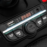Realistyczny wygląd podkreślają przednie i tylne światła LED, komfort zapewnia siedzisko z czarnej eko-skóry oraz praktyczny tylny uchwyt transportowy. Panel multimedialny z MP3, radiem FM, Bluetooth, USB i AUX zadba o ulubioną muzykę podczas jazdy. Wbudowany wskaznik naładowania kontroluje stan akumulatora.