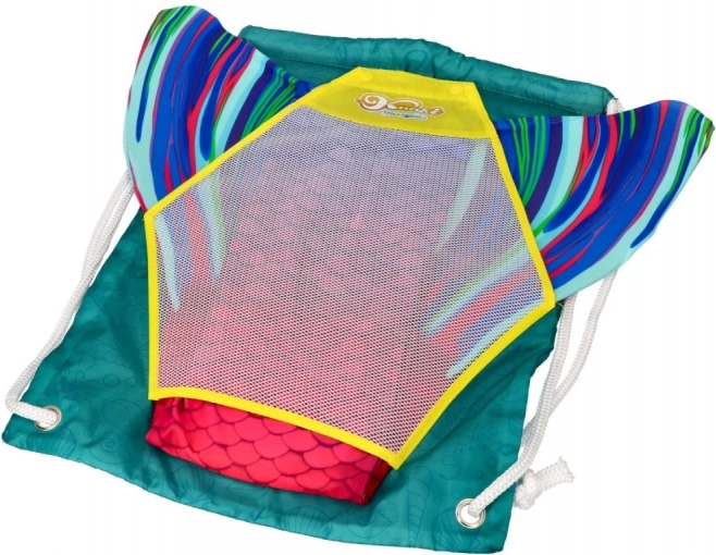 Stylowy worek z morskim motywem pomoże wygodnie przenosić sprzęt pływacki – od ogona/monopłetwy po strój kąpielowy i ręcznik. Oddychające części pozwalają na szybkie wysychanie po użyciu, dzięki czemu zawartość nie pozostaje długo wilgotna.