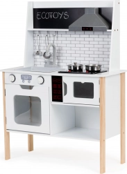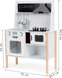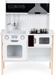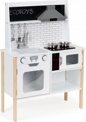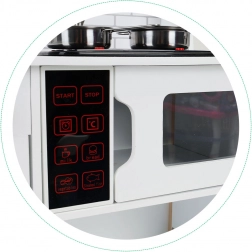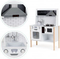 Dzięki solidnej i stabilnej konstrukcji kuchnia jest bezpieczna i odporna nawet przy codziennej zabawie. Ruchoma bateria kuchenna oraz obrotowe pokrętła z klikiem nadają zabawie realistyczny wymiar, który dzieci uwielbiają. Kuchnia pobudza kreatywność, umiejętności społeczne i uczy utrzymywania porządku.