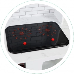 Podświetlenie LED imituje rozgrzane palniki, a towarzyszące bulgotanie tworzy wrażenie prawdziwego gotowania – idealne do realistycznej zabawy.