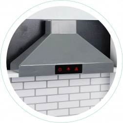 Górną część kuchni zdobi okap oraz praktyczne haczyki, dzięki którym dodatki będą zawsze pod ręką, a kuchnia pozostanie uporządkowana.