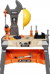 - Bogate wyposażenie: stolik, imadło, kask, piłka ręczna, 2 wkrętaki, młotek, klucz nastawny, kombinerki, 2 klucze, okulary ochronne, stołek, kółka zębate, śruby, nakrętki, kołki rozporowe i listewki.