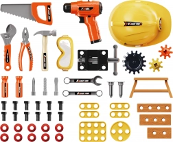 Zestaw wspiera rozwój motoryki precyzyjnej, logicznego myślenia i koordynacji oko–ręka. Dzięki szerokiej gamie narzędzi dzieci mogą wypróbować różne czynności: od wkręcania, przez cięcie, po konstruowanie.