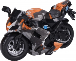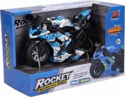 Zabawny motocykl na napęd sprężynowy o długości 16 cm ucieszy małych i dużych fanów szybkiej jazdy. Dzięki mechanizmowi na wsteczne naciąganie wystarczy motocykl naciągnąć i puścić – ruszy sam do przodu. Kompaktowe wymiary i wytrzymałe wykonanie są idealne do domowych wyścigów i w podróży. Dostępnych jest wiele wariantów kolorystycznych oraz łatwe sterowanie bez baterii.
