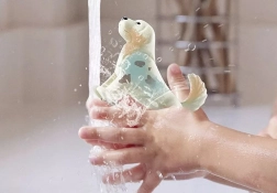 Wytrzymała plastikowa zabawka dla psa jest idealna do zabaw w wodzie, takich jak w wannie.