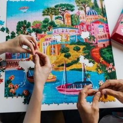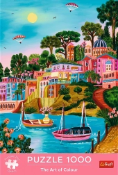 Puzzle TREFL Premium Plus z serii The Art of Colour (Sztuka kolorów) oferują wyjątkowe wrażenia wizualne z motywem malowniczej wyspy Syros w Grecji. Wysokiej jakości tektura i precyzyjna technologia wycinania sprawiają, że elementy pasują tylko tam, gdzie powinny, a dzięki zwiększonej grubości złożone fragmenty możesz łatwo przenosić bez ryzyka rozsypania.