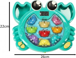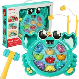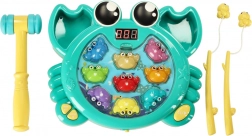 Zabawka oferuje dwie możliwości zabawy – uderzanie krabów młotkiem i łowienie ryb wędką.