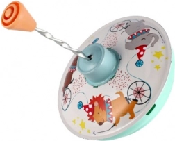 Bączek jest zaprojektowany tak, aby przemówić do dzieci swoją kolorystyką i łatwością obsługi. Ta klasyczna zabawka zapewnia rozrywkę i jednocześnie wspiera rozwój umiejętności motorycznych. Wystarczy pociągnąć i nacisnąć dźwignię, a bączek natychmiast zacznie się kręcić, co zapewnia długie minuty fascynującej zabawy.