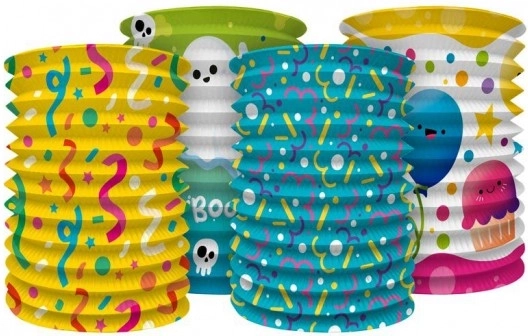 Czarujący kolorowy papierowy lampion idealny na przyjęcia i karnawały. Stwórz zachwycającą atmosferę z tą ognioodporną dekoracją.