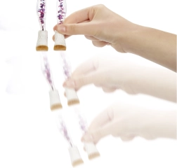 Nogi lalek są pełne połyskujących cząsteczek, które poruszają się przy potrząsaniu.
