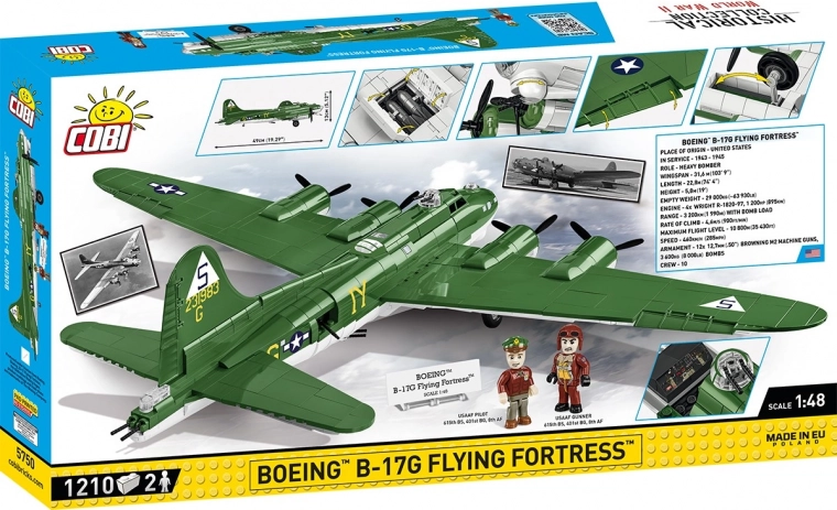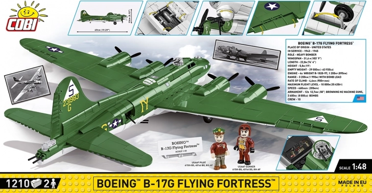 Zbuduj własny Boeing B-17G Latająca Forteca dzięki temu ekskluzywnemu zestawowi od COBI! Model jest wierny skali 1:48 i składa się z ponad 1232 wysokiej jakości elementów. Konstrukcja wykorzystuje wyłącznie trwałe nadruki zamiast naklejek. Zestaw oferuje ruchome elementy, takie jak koła, składane podwozie, śmigła i otwierane komory bombowe. Ten model zapewni wiele godzin satysfakcjonującego składania i będzie znakomitą ozdobą każdej kolekcji.