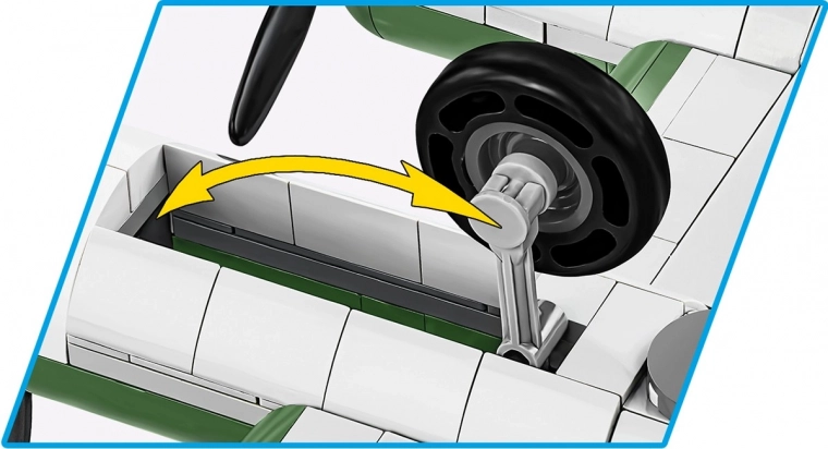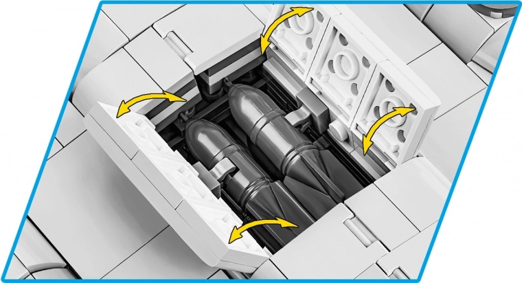 Wyposażony w ruchome śmigła, składane podwozie oraz otwierane komory bombowe, co zwiększa interaktywność.